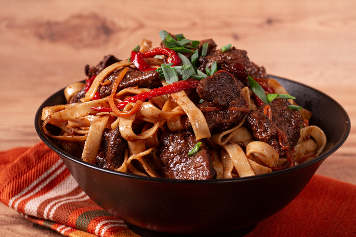 Samengestelde boxen met grasgevoerd vlees, verse groenten en bijpassende recepten.