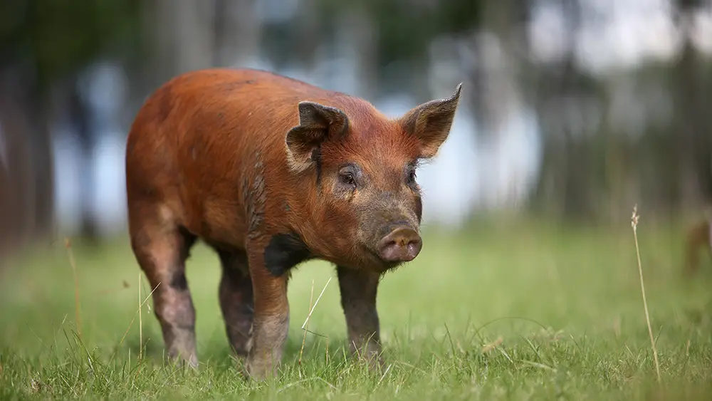 Het varkensvlees komt van Duroc scharrelvarkens, een bijzonder ras dat vrij kan rondlopen op de boerderij. Duroc varkens staan bekend om hun malse, sappige vlees met gemarmerde structuur. Hun vrije, stressvrije bestaan resulteert in heerlijk, mals en sappig vlees – een ware delicatesse!