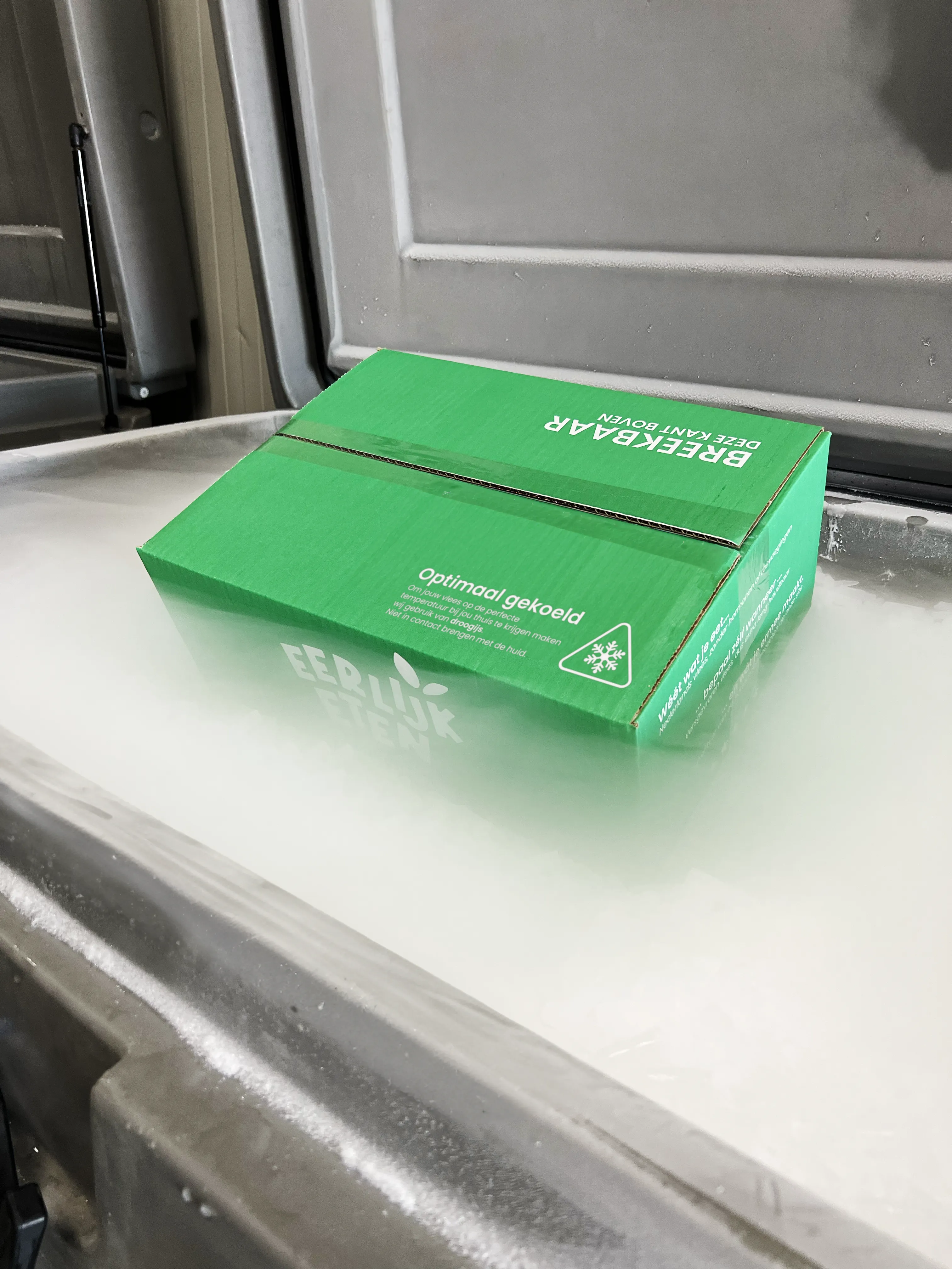 Ons grasgevoerde vlees wordt zorgvuldig verpakt in een dikwandige piepschuimen box en wordt overladen met droogijs. Droogijs heeft een temperatuur van -79 graden celsius. Hierdoor komt het vlees in perfecte staat bij jou aan. Wanneer het pakket bij jou thuis wordt bezorgd, is het droogijs grotendeels tot volledig verdampt.